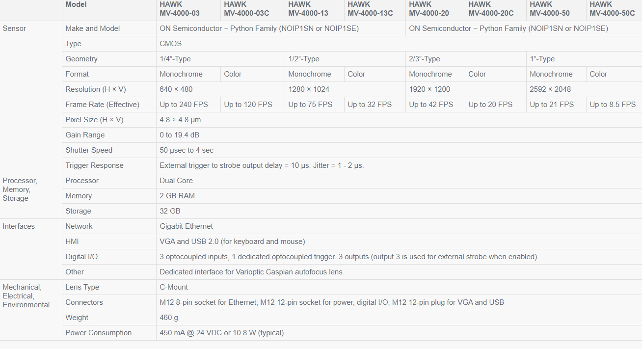 The HAWK MV-4000 smart camera builds upon the previous generation by quadrupling processing power and achieving real-time trigger response using an FPGA. Its state-of-the-art algorithms make it an excellent tool for any industry, whether the requirement be code reading, code verification, inspection, guidance, gauging or a combination of all four.