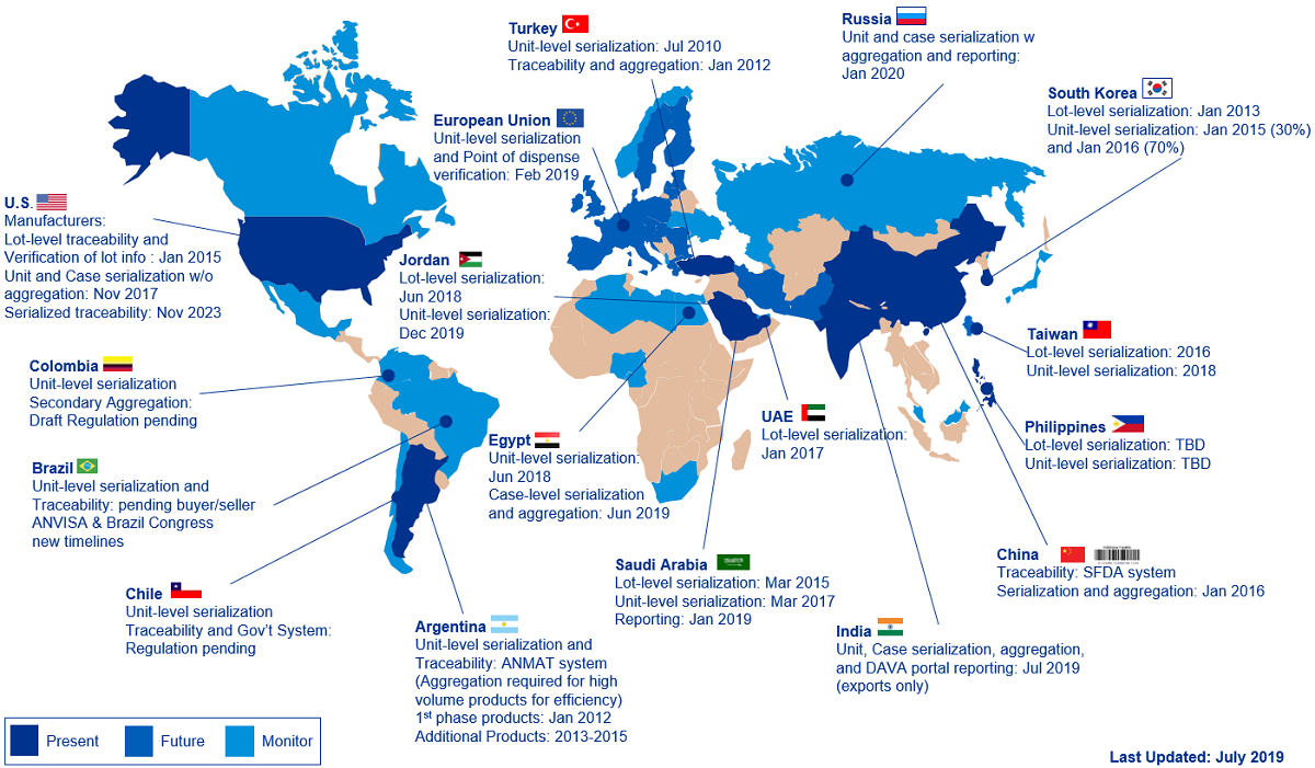 Do lợi ích quá lớn mà hệ thống mang lại mà ngày nay, các quốc gia đã và đang nhanh chóng áp dụng hệ thống serialization lên chính quốc gia của mình. Điều này đồng nghĩa với việc các nhà máy phải áp dụng hệ thống serialization này để sản xuất thuốc. Đối với các quốc gia chưa áp dụng hệ thống ( có Việt Nam ) việc các nhà máy muốn xuất khẩu thuốc sang các thị trường như Châu Âu , Mỹ … nhà máy bắt buộc phải áp dụng hệ thống serialization mới được phép xuất khẩu.